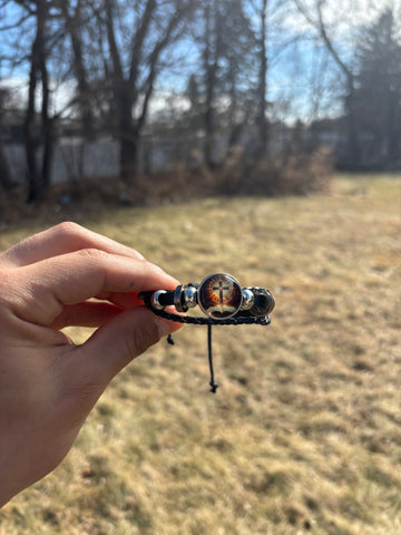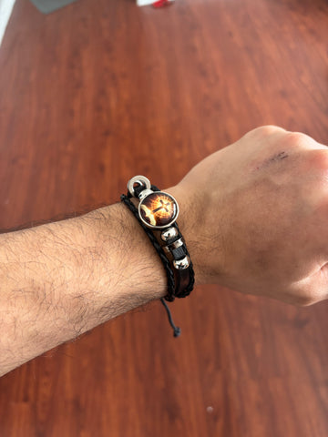 Made with durable braided leather and polished stainless-steel details, this bracelet is built to last. Designed for comfort and daily use, it combines timeless craftsmanship with a meaningful symbol you can wear with confidence.
